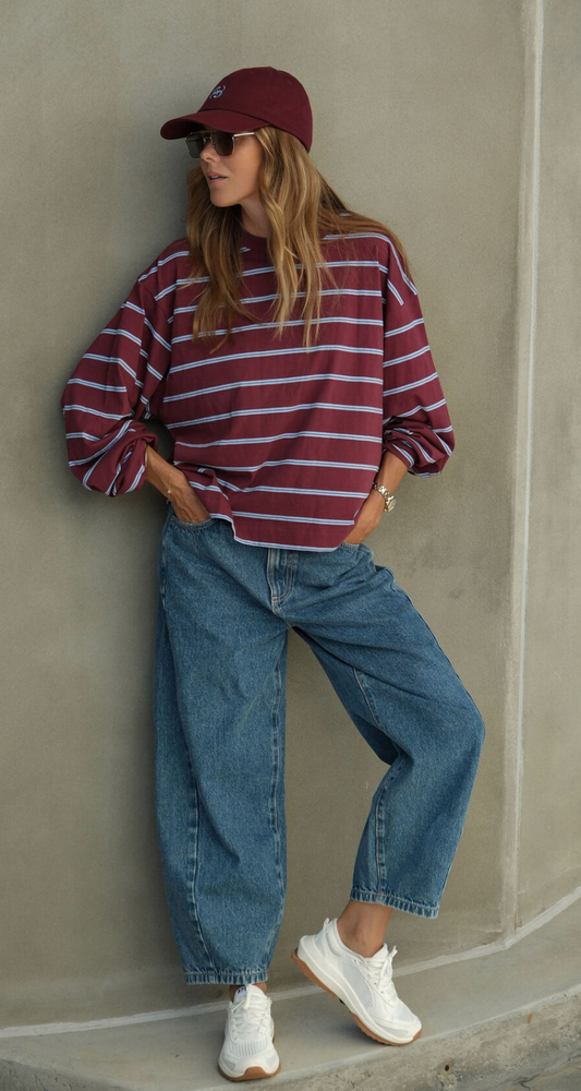 Beau Long Sleeve Slouchy Tee - Burgundy and Blue