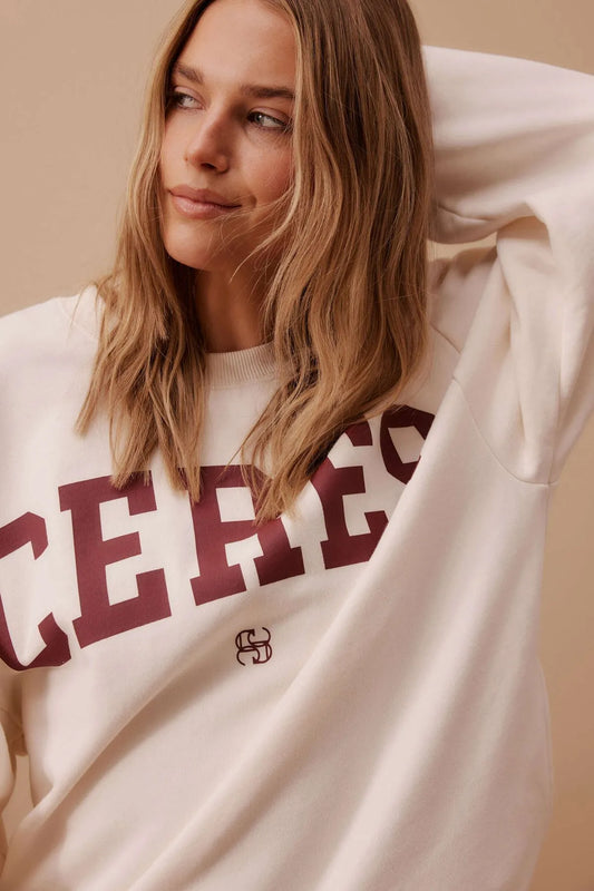 ISLA OVERSIZED SLOUCHY CREW/WINTER WHITE HERITAGE LOGO - Ceres Life