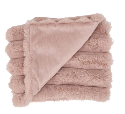 Hommey Faux Fur Throw Blanket - Charcoal, Olive, Marshmallow and Rose