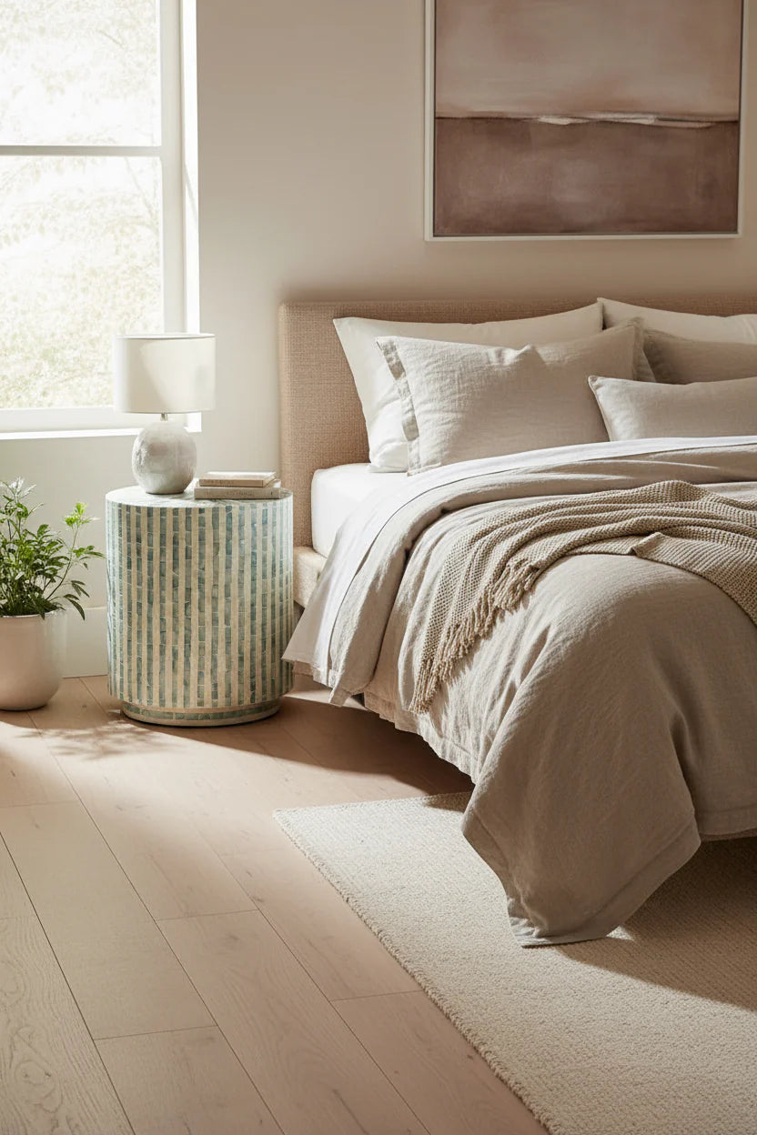 Add a pop of color and artisanal charm to your space with the Bari Inlay Stool. Crafted with intricate inlay detailing in a vibrant sky blue finish, this versatile stool is perfect for extra seating, as a footrest, or as a decorative accent in living rooms, bedrooms, or entryways. Its compact size and sturdy construction make it both functional and stylish.