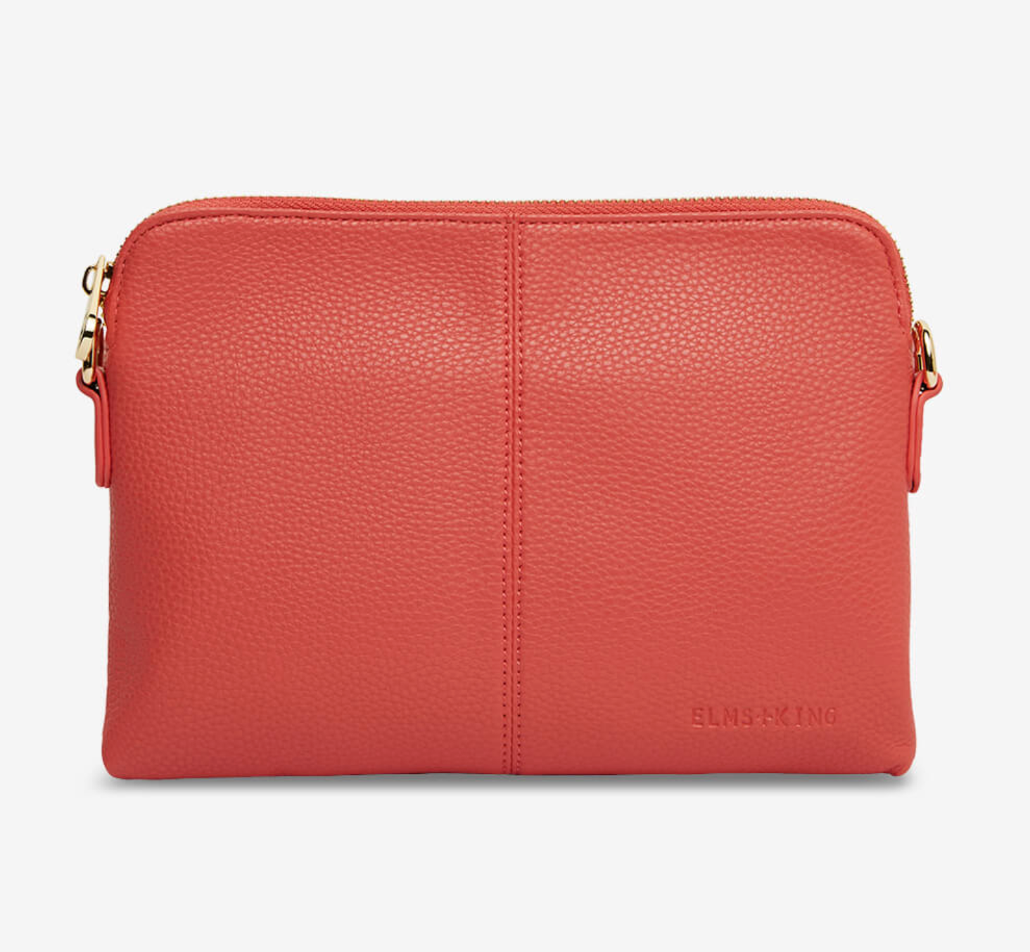 The Elms and King Bowery Wallet offers the functionality of a wallet, with the hands-free ease of a cross body. Made from premium polyurethane with 14-karat light gold-plated hardware, the Wallet has space inside for 12 credit cards and two open top slip pockets. With its adjustable/removable crossbody strap, this piece can be used as a compact clutch, shoulder bag or crossbody bag.
