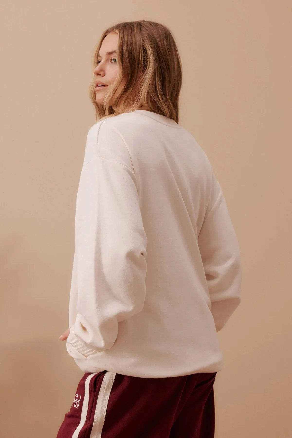 Introducing our Oversized Slouchy Crew, the epitome of comfort and style. Made with an organic cotton blend and featuring a loopback design, with its oversized fit, drop shoulder, and thumb hole in the cuff for that extra touch of laid-back charm, it's the perfect for everyday wear. And did we mention the pockets in the side seams? Stay cosy and stylish - lounge, relax, and stay comfy in this everyday essential.