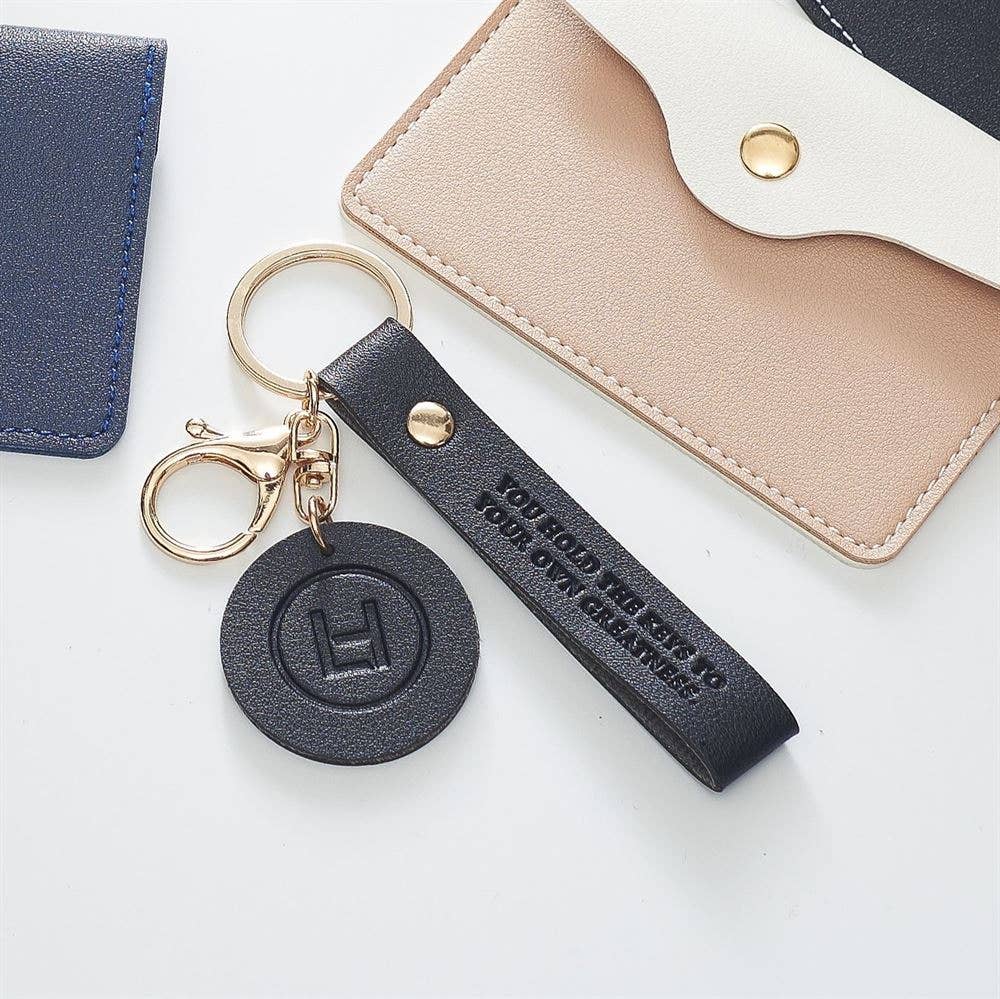 The finer details -Made of vegan leather -Includes double key ring (traditional ring + easy-open latch ring) -Blind embossed with inspirational quote “You hold the keys to your own greatness” - Also available in other colours.