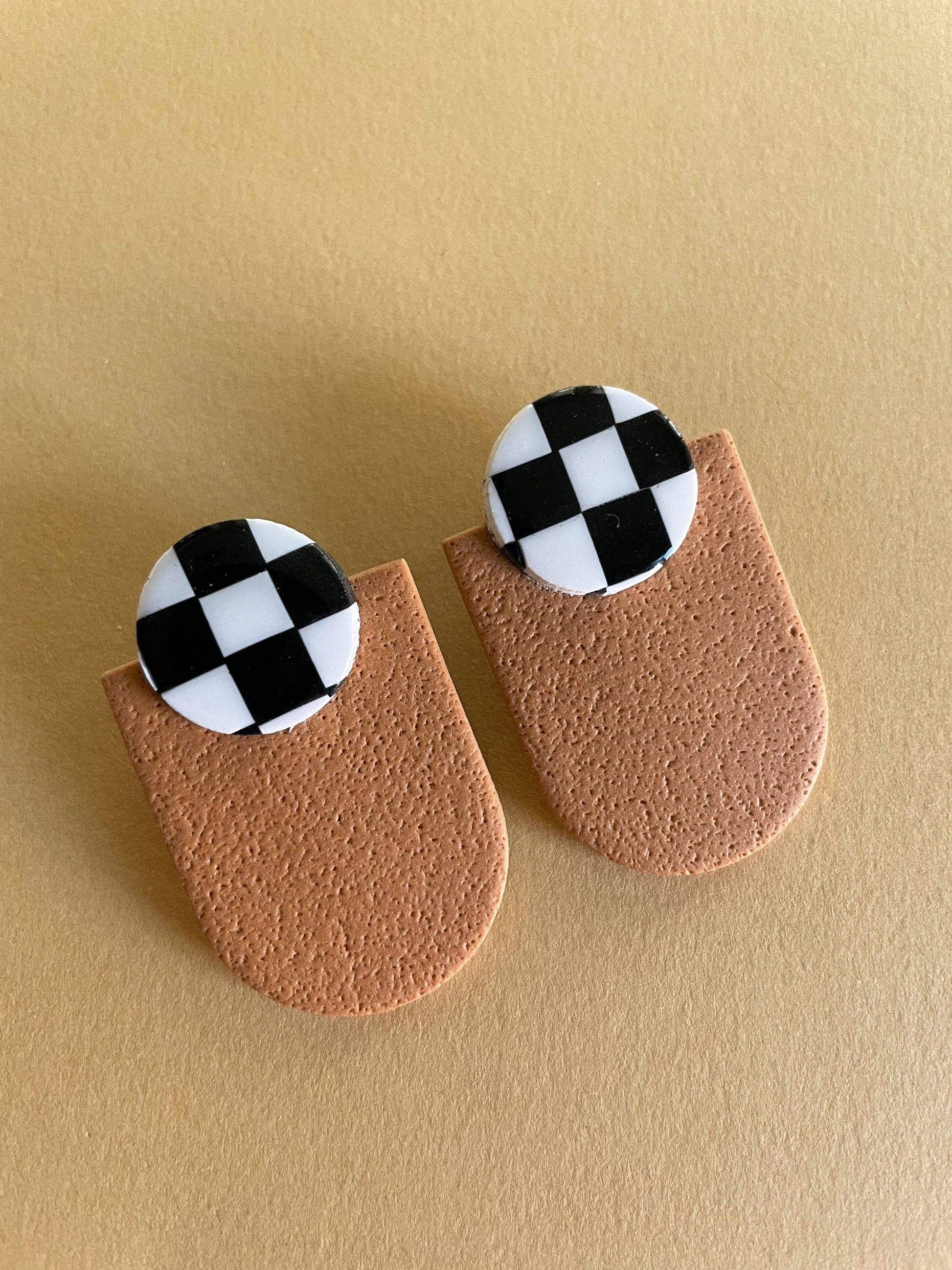 A funky yet flattering earring for anyone who appreciates a pop of pattern and color. This design is chic and sleek and simply looks fabulous on everyone. Available in three color ways - Camel, Blush, and Marigold. Warm and happy colors that are stylish and versatile to wear anytime, anywhere!