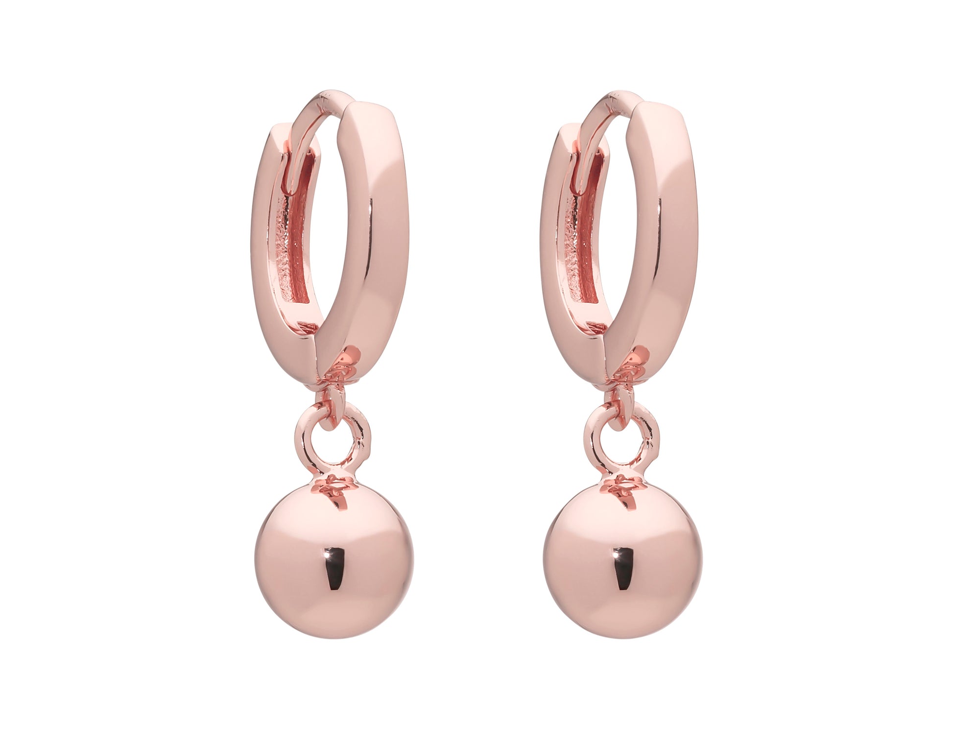 *Myla drop ball earrings *Microplate rose gold finish *Safe for sensitive ears *Cute small huggees with small ball dangle *Comes with logo box & pouch ^A must have core style that re defines tradition. Available in Silver, 12k gold & rose gold finishes.