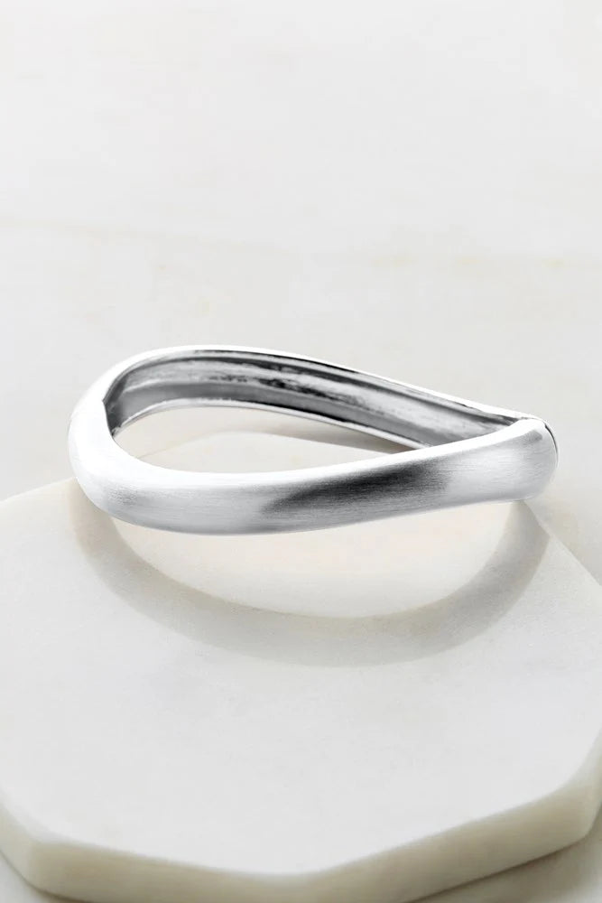Make a statement with the Nara Brushed Bracelet, a bold chunky bangle featuring a convenient spring closure. Finished with our distinctive brushed texture, this bracelet is perfect for wearing solo for a sleek, modern look or stacking with our Olivia and Ally bracelets to create a striking layered effect. Its versatile design and textured finish make the Nara Brushed Bracelet a standout piece in any jewellery collection.