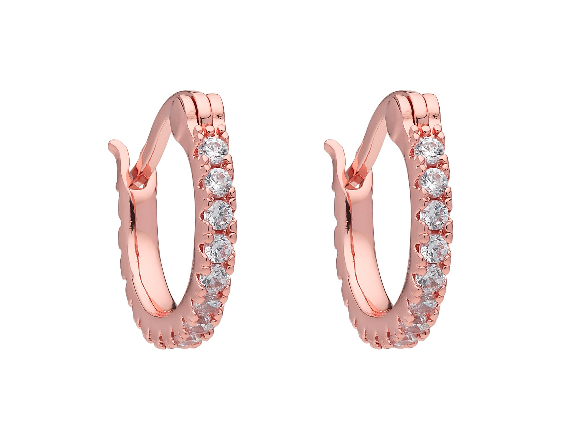 *A delicate small huggie with impact *Crystal pave curved 1cm huggie *Microplated finish & Nickle free *Stainless steel posts for sensitive ears *Signature packaging ^Subtle shine on its own and perfect with your ear stack