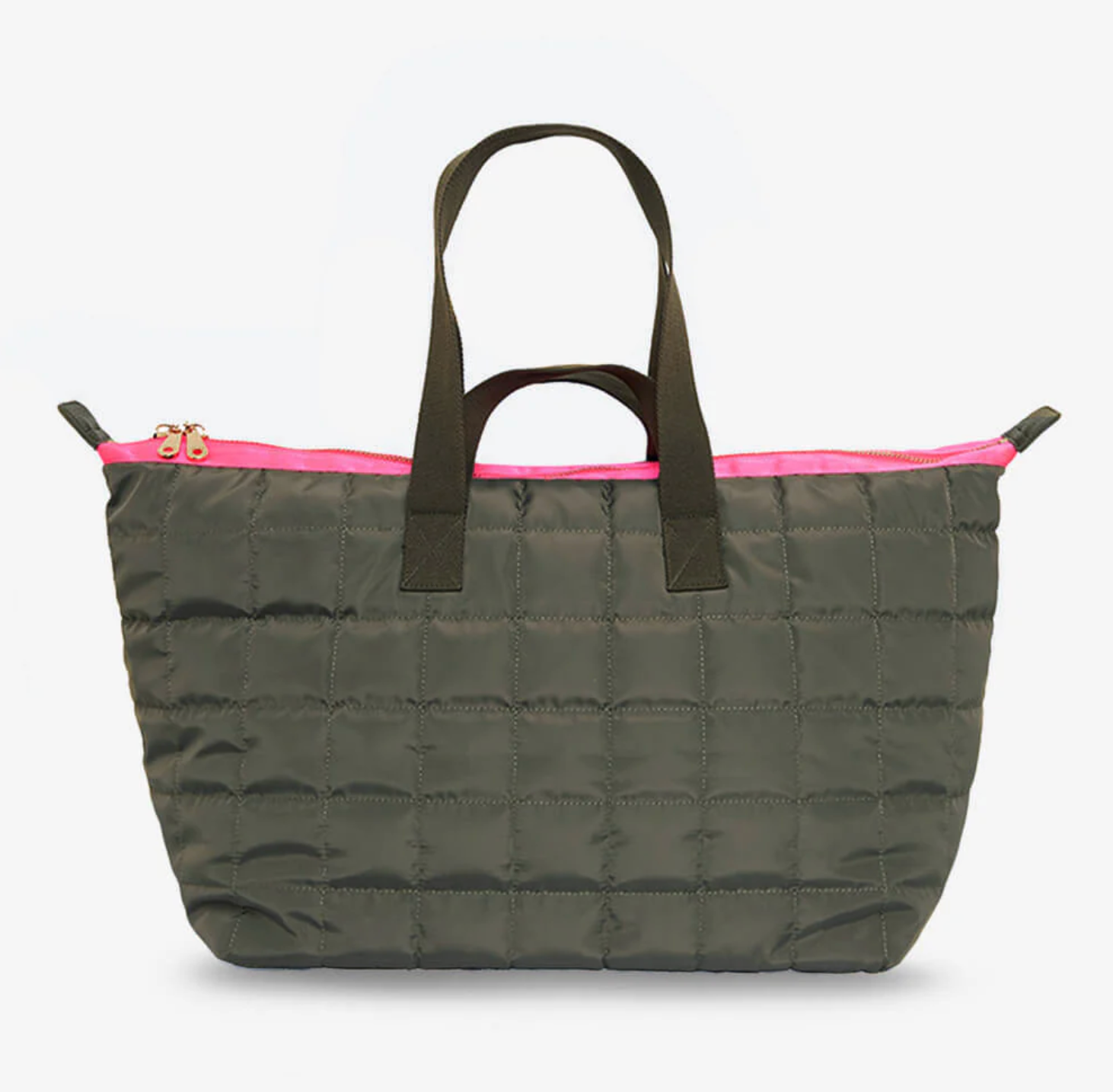 The Elms+King Spencer Carry All is the stylish weekend accessory we have all been dreaming of. With its two top-grip handles of varying drop height and an internal zip-pocket for ease of access, this Carry All can be used as a weekender, beach bag or everyday accessory for those of us always on the move. Made from premium quilted nylon with 14-karat light gold-plated hardware, the Spencer Carry All features a bright pop nylon lining.